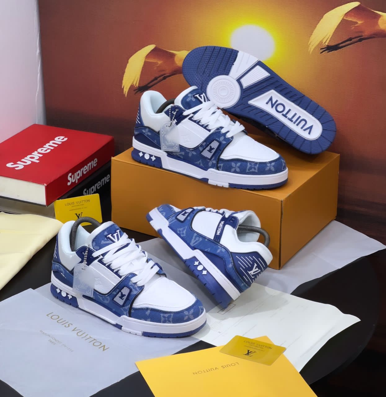 Louis Vuitton LV Trainer – Blue Monogram Denim & White Calf Leather | ArvoLuxury