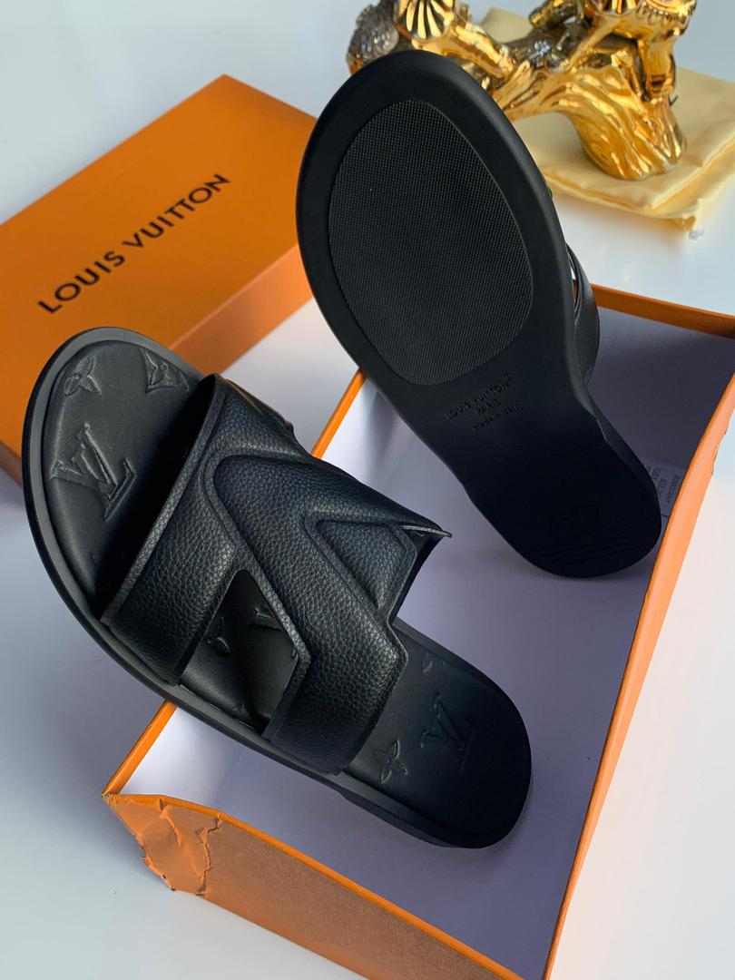 Louis Vuitton Men’s Black Leather Slides – Refined Luxury at ArvoLuxury