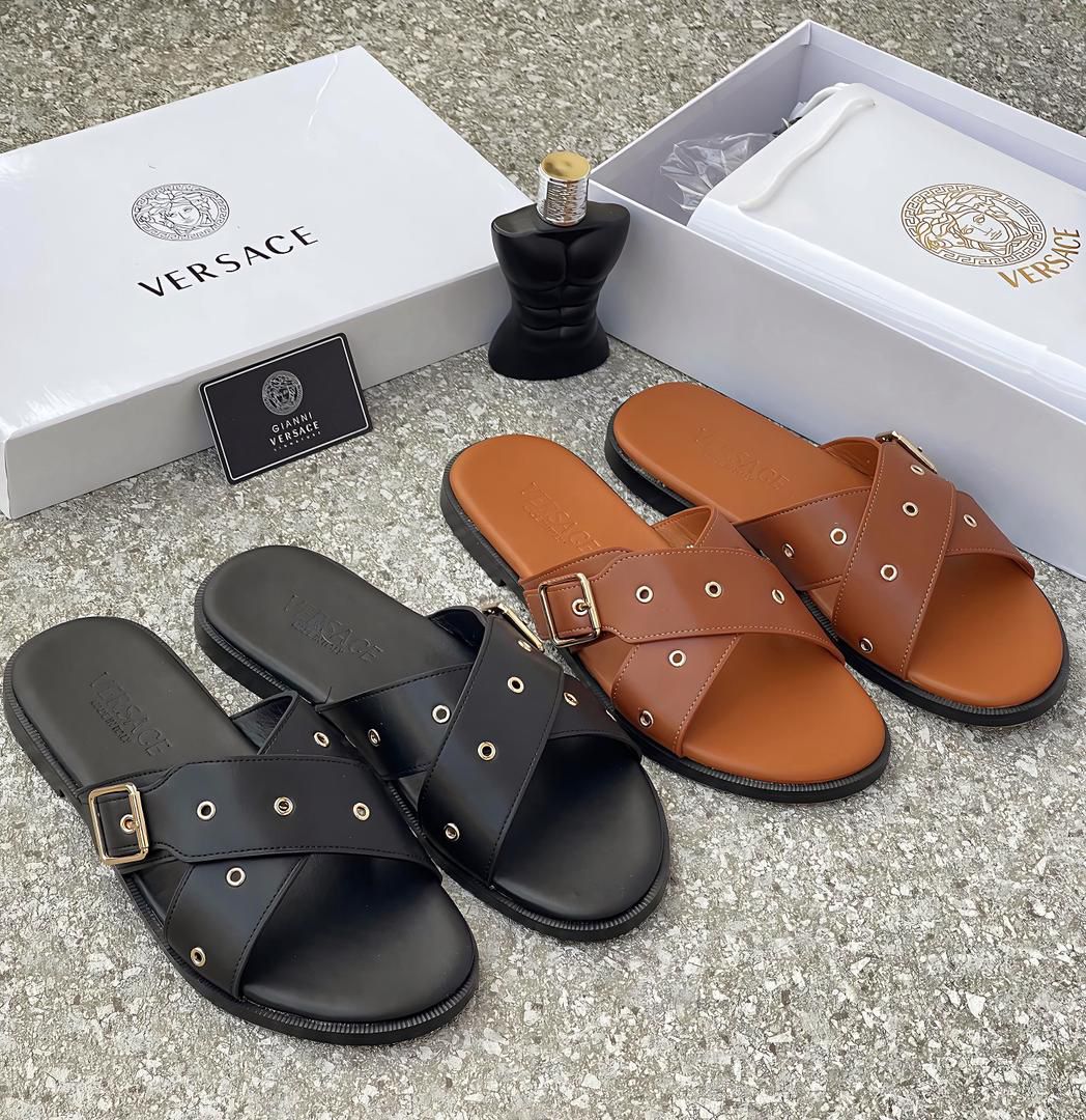Versace Men’s Slides – Black & Brown | ArvoLuxury
